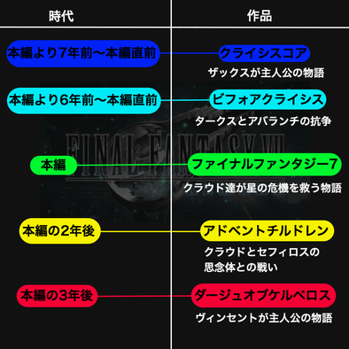 Ff7とff7rのストーリー時系列まとめ ネタバレ Splatoonブキ研究所 Note